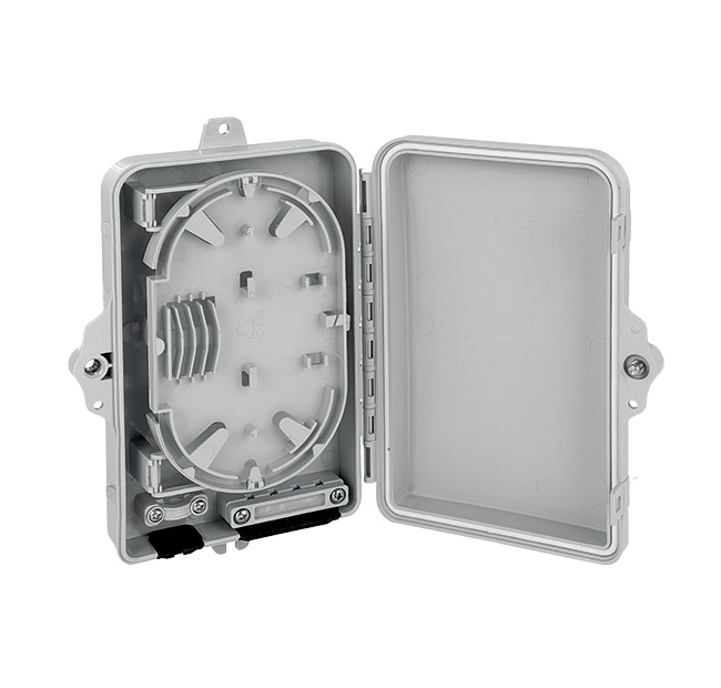 - Structure Polycarbonate + ABS body, 180° door opening with key, 2 inputs for multi-fibre cables, 5 inputs for drop cables, integrated splice tray, supports for installing 4 bushings